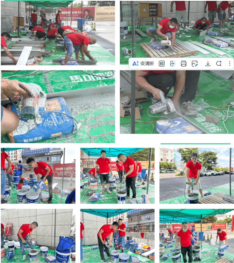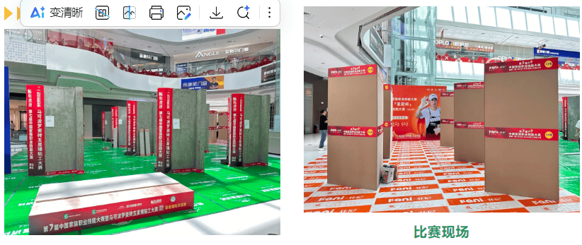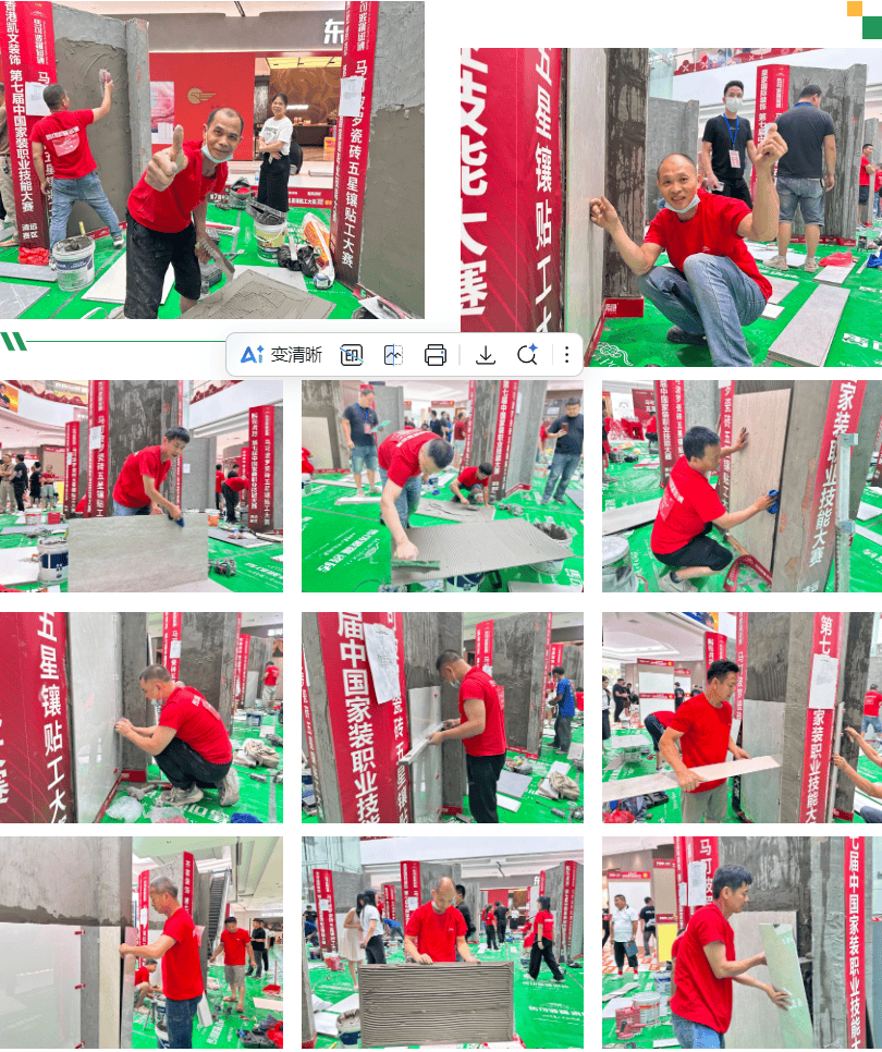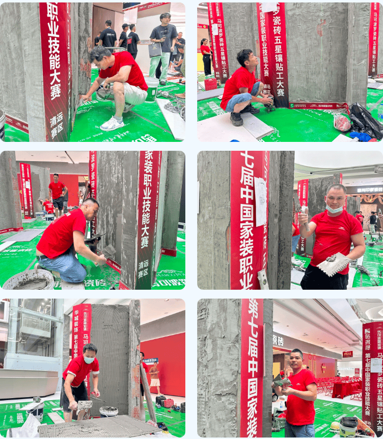 清远马可波罗瓷砖、清远菲尼艺术涂料、贴得稳岩板大板瓷砖胶、广东碧桂园职业学院、福源国际建材家居广场。正在马可波罗瓷砖五星镶贴工竞赛区,每个步调都必需严酷按尺度施行。也曲不雅感遭到优良材料取尺度工艺连系后的结果差别。鞭策施工工艺的规范化和艺术表达的多样化,可以或许让一线工匠正在实和中身手、进修立异,